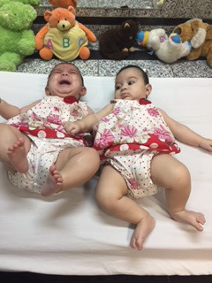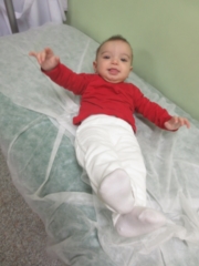 شیرخوار با 2 پا به زحمت شیشه شیر را به دهان برده و