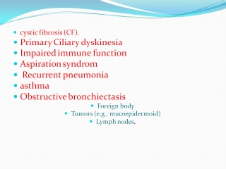pneumonia due to impaired ciliary function, and bronchiectasis