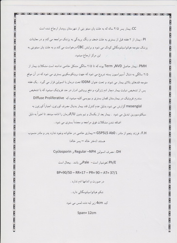 پدر و مادر بیمار منسوب درجه اول (دخترخاله پسرخاله) می باشند.
