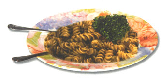 ماكاروني با گوشت چرخ كرده و كمي سبزي/ يا ماكاروني با پنير رنده شده/ يا لوبيا