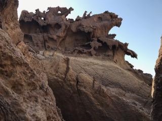 ژنوسایت تنگه چاهکوه : در 90 کیلومتری جزیره قشم پدیده ای شگفت از فرسایش سنگ های رسوبی که با باد وبارش های سیلآسا حفره های زیاد واعجاب بر انگیز در میان دیواره های چاهکوه خلق کرده است ، این پدیده زمین شناسی یکی از مهم ترین جاذبه های ژئوپارک قشم نیز محسوب می شود ، دلیل نامگذاری آن وجود چاه هائی است که مردم سخت کوش غرب جزیره قشم از زمان های بسیار دور ( شاید از زمان ساسانیان واشکانیان ) در ابتدای دره برای تامین آب آشامیدنی شیرین حفر کرده اند وسه چاه هم در 50 سال قبل اضافه شده است .بعد از این بازدید برای صرف نهار در خانه روستائیان که تدارک دیده بودند صرف گردید .