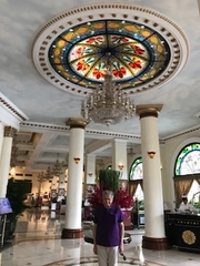 روز چهار شنبه 8 فروردین97 روز 6 سفر با هواپیما به مدت 2 ساعت از هانوی به سایگون ( هو چی مین ) آمدیم ودر هتل 5 ستاره ماژستیک وارد شدیم . عصر در اطراف هتل وخیابان های اطراف برای آشنا شدن قدم زدیم واپرا هاوس Opera House هو چی مین بازدید واز ساعت6- 5/7 در برنامه نمایشی بسیار مهیج شرکت نمودیم . پنجشنبه 9 فروردین 97 روز هفتم سفر قصر رئیس جمهور که آمریکائی ها در زمان 21 سال که در ویتنام جنوبی یعنی سایگون بودندساخته اند هوچی مین که با کمک شوروی وچین توانست ابتدا فرانسوی هارا از ویتنام شمالی بیرو ن کند وقتی تانک های شوروی وچین به درب کاخ رسیدند سومین رئیس جمهور دست نشانده آمریکا تازه 3 روز بود به این مقام رسیده بود تسلیم ومعاهده خاتمه جنگ نوشته شد وکاخ به همان حال باقی ماند در سال 1962 ساخته بودند ، در این کاخ محل سخنرانی تهیه شده بود که رئیس جمهور در بالای بالکون سخنرانی کند که در همین بالکون تسلیم شد . در داخل کاخ یک قسمت در پشت ساختمان محل زندگیخانواده ودر قسمت جلوساختمان چند طبقه محل پذیرائی مهمان ها ی خارجی ومشابه همین قسمت ها در زیر ساختمان پناهگاه های زیاد برای رئیس جمهور وخانوادش وآشپز خانه واطاق کار رئیس جمهور در پناهگاه تعبیه شده بود . اکنون بعد از یکی شدن ویتنام شمالی وجنوبی ای قصر یه عنوان موزه جنگ War Museum که تمام تجهیزات جنگی بکار رفته وتانک های آمریکای وتمام وسائل جنگی وعکس های زیاد از کشته ، معلولین ، انومالی های مادر زادی حاصل از ماده شیمیائی که در جنگل ها وآب ها ریخته شده وبیمارستانی که با 200 بیمار کشته شده اند میتوان دید وبه جنایات مطلع شد وتاسف خورد .