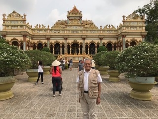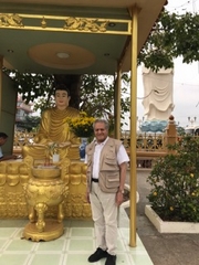 جمعه 10 فروردین 97 روز 8 سفر یک روز تمام جهت بازدید رود مکونگ Mecong River راهنمای تور آقای Tommy بود وتوضیح داد که کشور های ژاپن ، کره جنوبی ، سنگاپور ، هنگ کنگ ، استرالیادر این کشور سرمایه گذاری کرده اند .ژاپنی ها قرار است با همکاری ویتنامی ها تا سال 2020 مترو تحویل دهند ژاپنی ها از سال 1940 تا 1945 به مدت 5 سال در ویتنام بودند ودر این مدت کمک هائی برای ساخت مدرسه وکار های عمومی انجام داده اند . دلتا مکونگ تقریبا 5/1- 2 ساعت با شهر سایگون فاصله دارد ، طول رود 4300 کیلومتر می باشد که از چین – میانمار – تایلند - لائوس و ویتنام می گذرد در زمان فرانسوی ها تمپلی به نام Temple VINH TRANG ساخته شده بودا از هندوستان به ویتنام آورده شده است بازدید نمودیم روی رود مکونگ پلی است که حدود 3 کیلومتر است وعمق رودخانه 50 متر است ، ابتدا قایق بزرگ سوار شدیم وپس از طی راه با قایق کوچک 3-4 نفری سوار شدیم وبا پاروزدن مسیر را طی نمودیم ، در جزیره رود مکونگ جهت پذیرائی که مفصل بود انجام شد ، خوانندگان متعددهر گروه برنامه های جالب ارائه می دادند وبرای همسرم که روز تولدش بود سرود Happy Birth to You اجرا نمودند سپس یک قسمت از راه را که بین جنگل ها بود با کالسکه 4 نفری طی مسیر نمودیم که عالی تنظیم شده بود ، جهت نهار در محلی بسیار قشنگ ومیان جنگل وبا هوای خوب انجام شد. نهار غذای دریائی ماهی ومیگوکه بطور زیبائی تهیه شده بود وسبزیجات مختلف که پخته سرو می شد ساعت 5 به هتل باز گشتیم