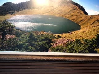 روز 30 مارچ 2019 برای دیدن هالاسان HALLASAN NATIONAL PARK مرتفع ترین کوه کشور هالاسان در این جزیره است 1950 متر ارتفاع دارد ، آتشفشانی خاموش با دهانه آتشفشانی وسیع در قله کوه ، جزیره جیجو در اثر آتشفشانی در حدود 2 میلیون سال قبل ایجاد شده است . پارک ملی هالاسان Hallasan با گونه های جانوری وگیاهی متنوع سئونگسان لچولبانگ Seongsan lichulbong با منظره نفس گیرش وغار مانجانگول Manjanggul به عنوان طولانی ترین غار آتشفشانی جهان ، اصلی ترین جاذبه های گردشگری جیجو می باشند . در این پارک گوزن های کوچکوگل های زیبای آزالیا را می توان دید جهت دیدن پارک کوه هالاسان شروع به پیاده روی در کوه وپارک نمودیم جاده کوه با پله های چوبی ساخته اند تا گردشگران راحت تر بتوانندکوه پیمائی نمایند جمعا حدود 10-12 ساعت طول می کشد تا به قله کوه آتشفشان برسیم ، ما قسمتی از راه تا حدود ایستگاه اول رفتیم وبرگشتیم ، تا این قسمتی که مارفتیم بسیار زیبا وهوای خوب داشت